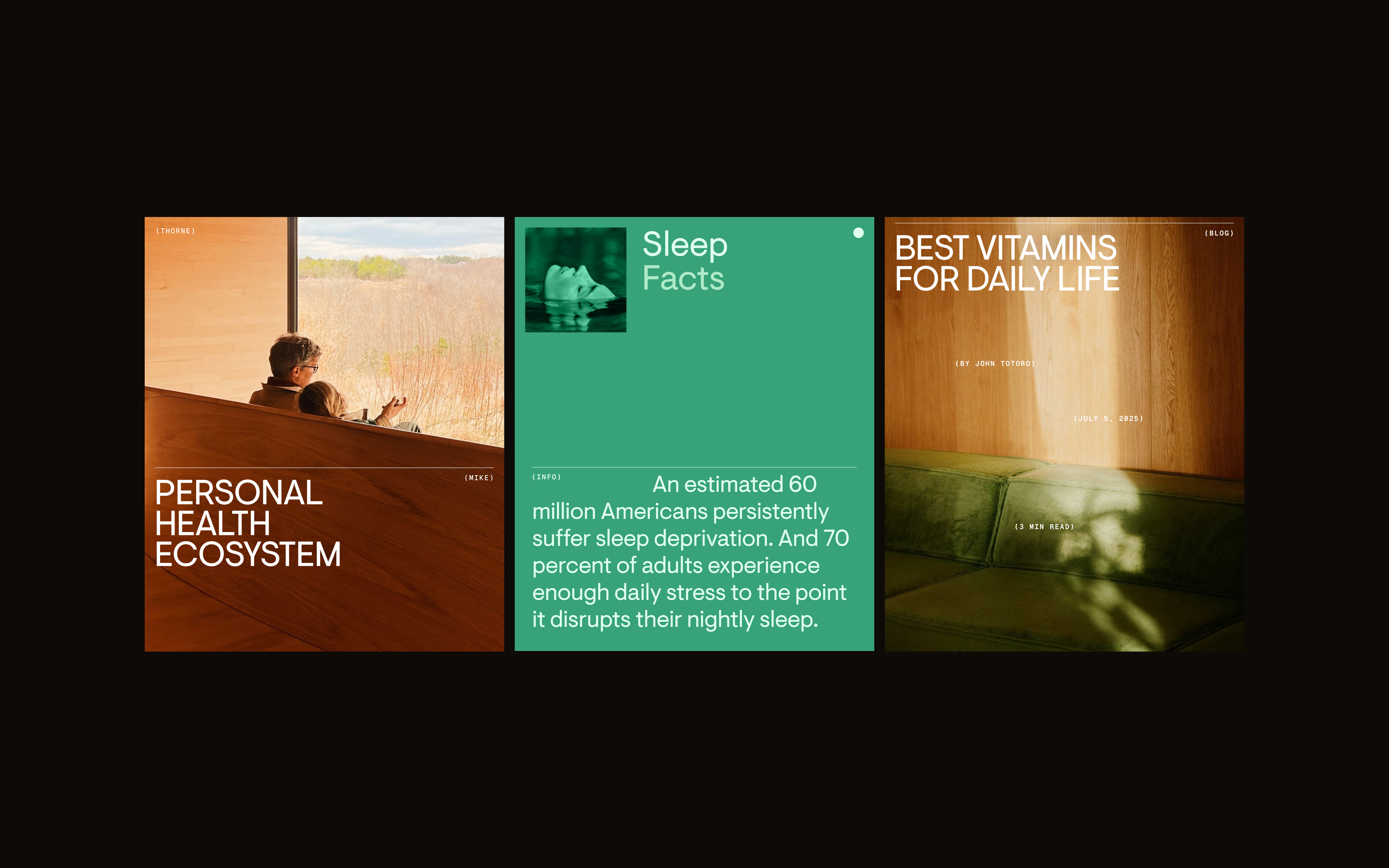In 2025, we collaborated with Thorne to develop a new brand identity, through the lens of a newly developed health tracking app. We were able to start from scratch, and explored a wide range of brand concepts that helped express Thorne's transition from being not just a medical company, but a holistic brand that values overall lifestyle and wellness too.
