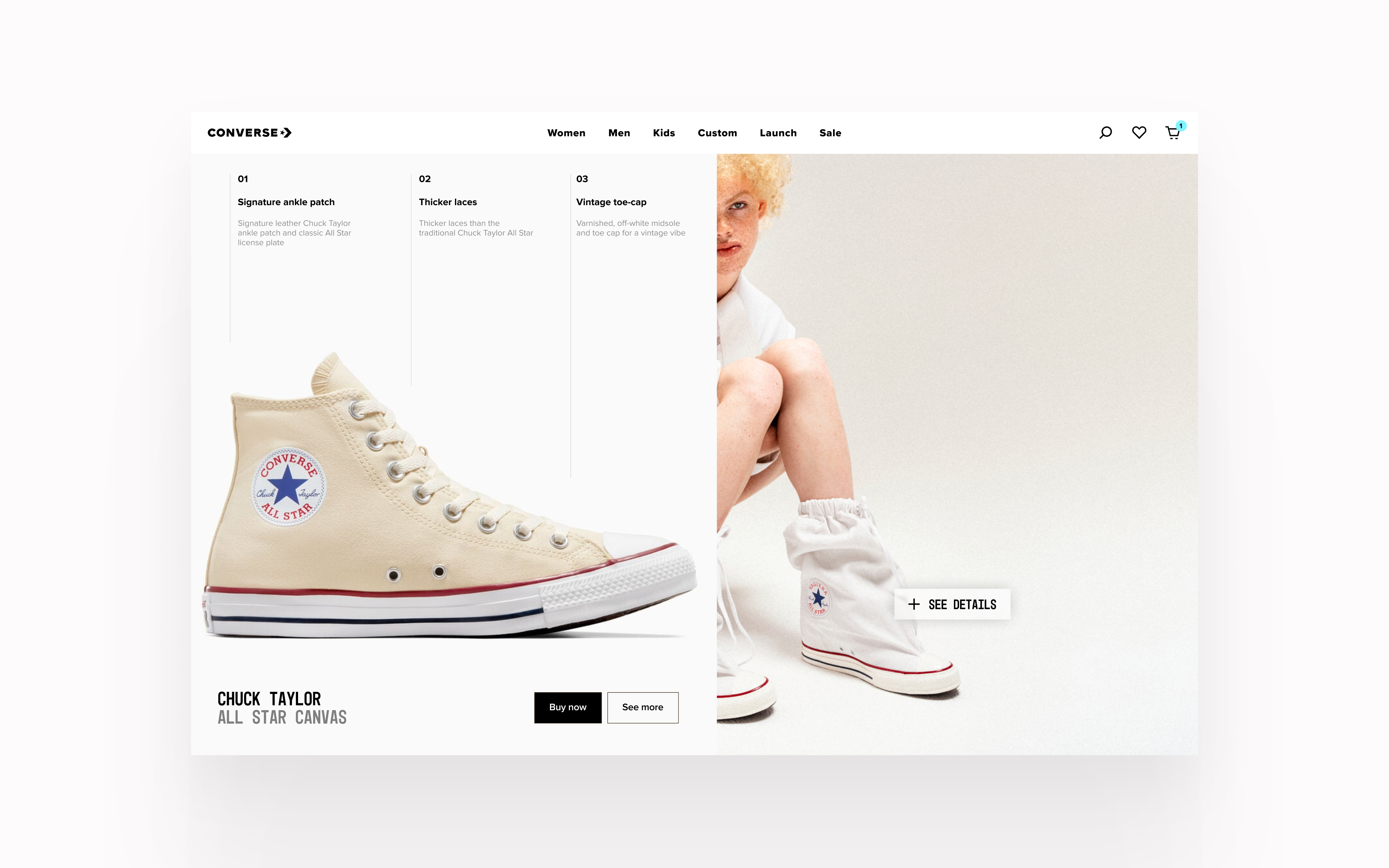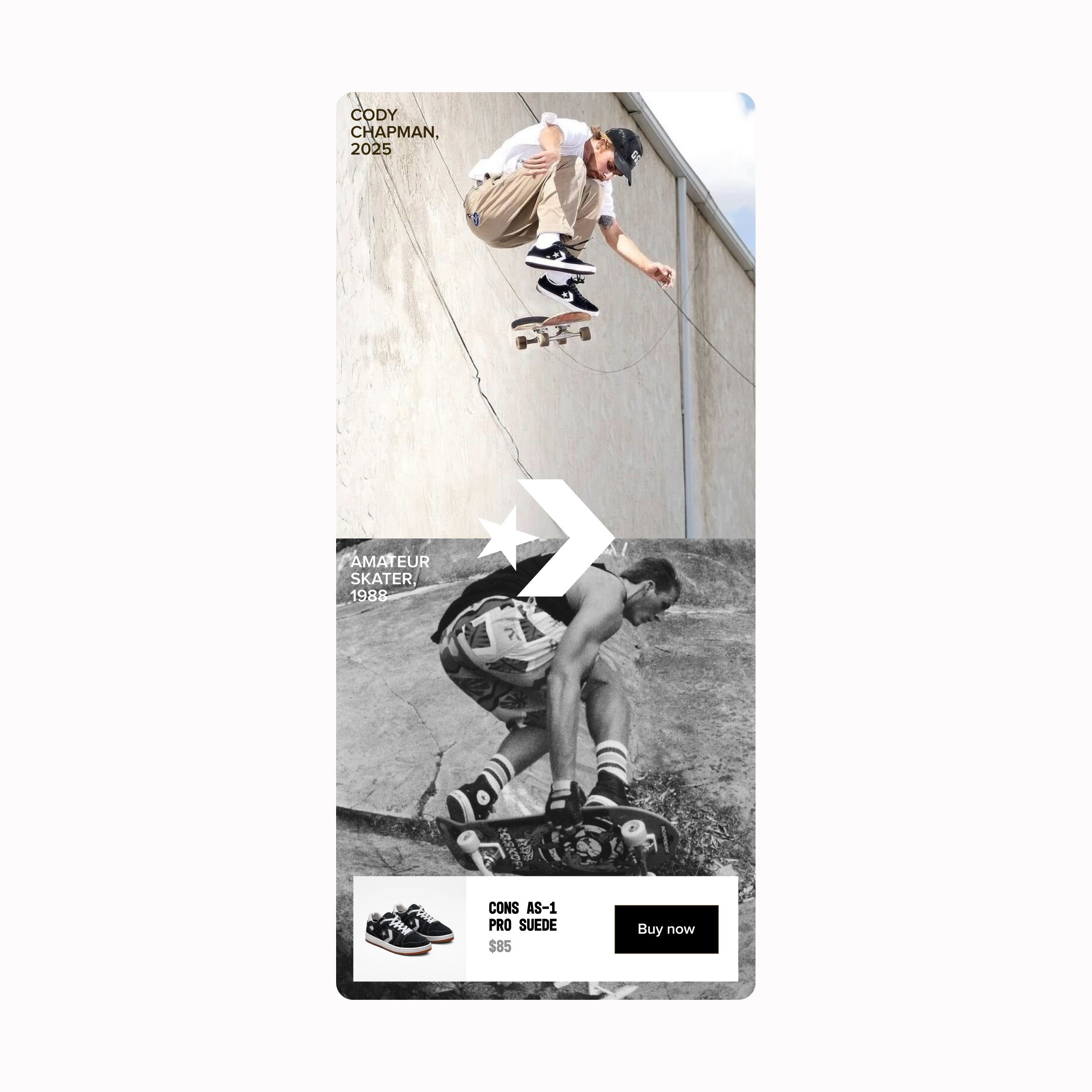 In 2025, we collaborated with Converse to incorporate more heritage-centric storytelling into their e-commerce experience. Converse wanted their brand to lean into the rich history the shoe has played in fashion, basketball, and skateboarding culture, while still feeling timely and relevant. So we began exploring ways storytelling could weave seamlessly into their e-commerce experience, by elevating current stories of how Converse plays a role in contemporary culture, while also subtly linking it back to it's rich heritage.